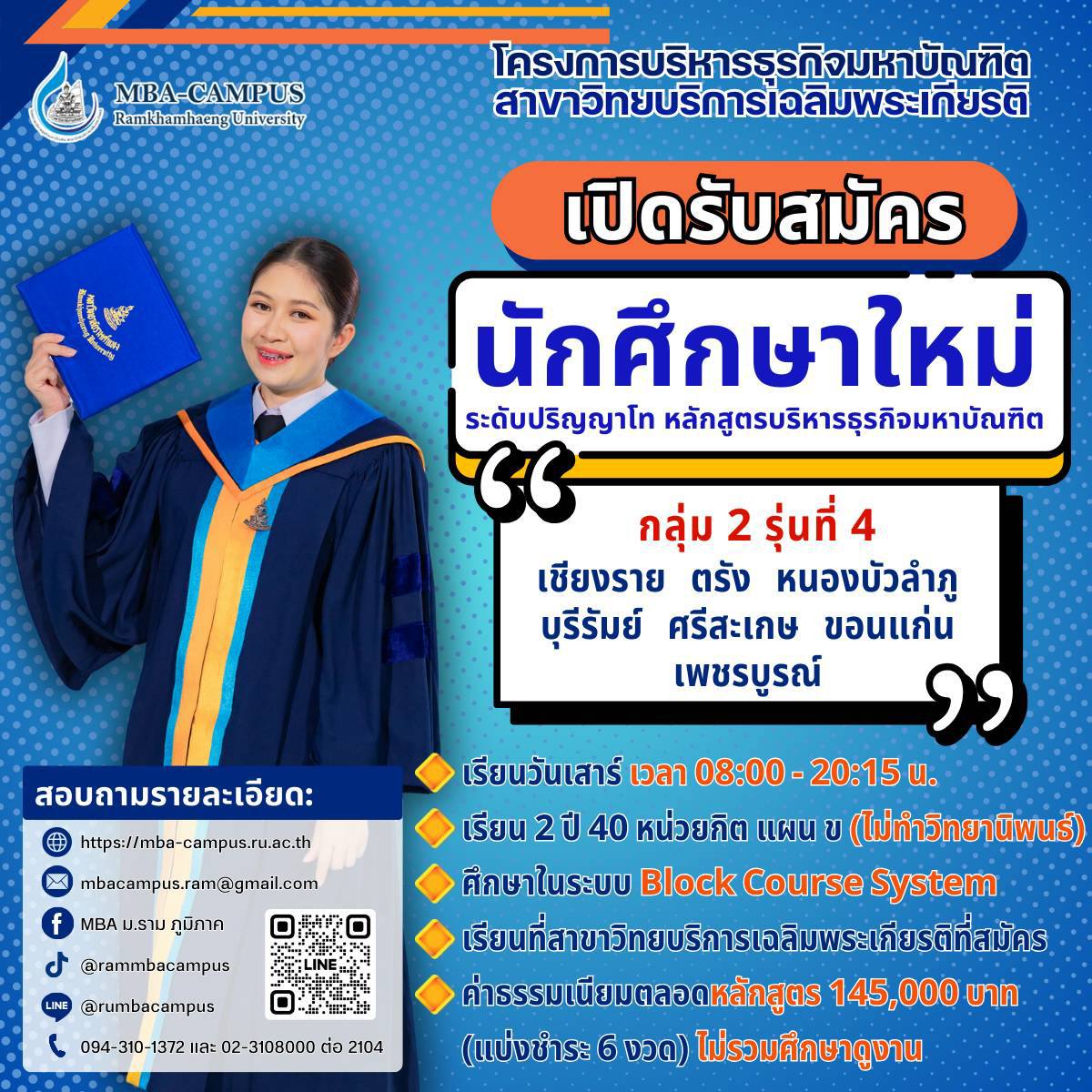 โครงการบริหารธุรกิจมหาบัณฑิต สาขาวิทยบริการเฉลิมพระเกียรติ เปิดรับสมัครนักศึกษาใหม่ (กลุ่มที่ 2) รุ่นที่ 4