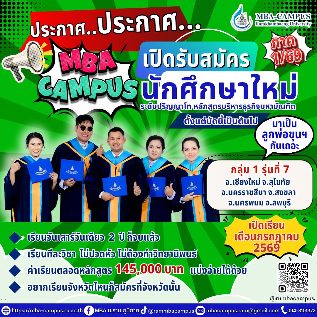 โครงการบริหารธุรกิจมหาบัณฑิต สาขาวิทยบริการเฉลิมพระเกียรติ ขยายเวลารับสมัครนักศึกษาใหม่ (กลุ่มที่ 1) รุ่นที่ 7 (ช่วงที่ 3)